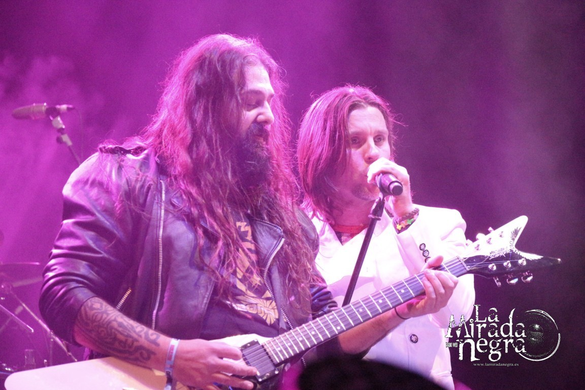 Avalanch entraban en acción con una larga intro que aún se extendería con la entrada en solitario de Alberto Rionda con la interpretación de “Santa Bárbara”, tema que fue la outro en la edición original del disco homenajeado en esta gira, regrabado para la ocasión con una banda espectacular acompañando al guitarrista asturiano. Dejaba claro Rionda así quién lleva la batuta en esta orquesta, esté quien esté como músico a su lado.