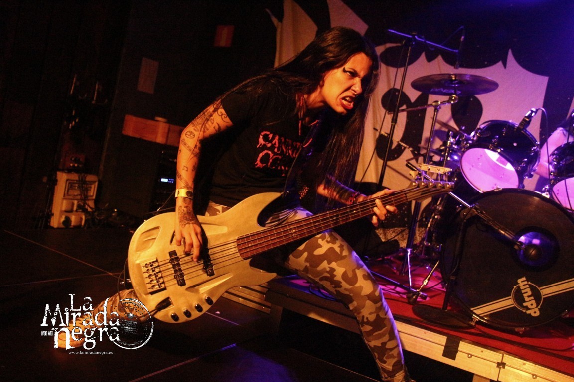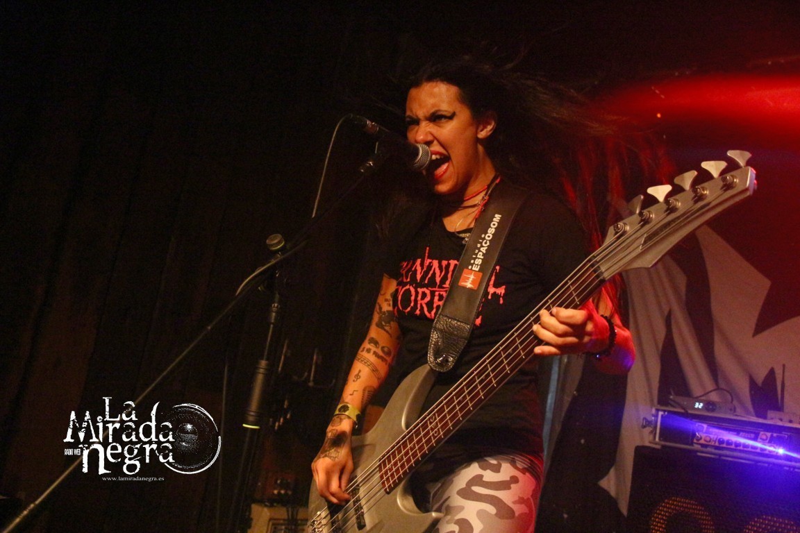 Pero los asistentes definitivamente se entregarían al trio de brasileñas que guardaban tras su máscara de dulzura inicial unas auténticas bestias del escenario que saldrían a morder desde que arrancara su actuación tras un montaje y prueba de sonido sobre la marcha que se alargaría más de lo esperado. Ahora bien, una vez desatadas todas las ataduras y puesto en libertad sobre las tablas el trío atacó con despiadada fiereza, haciendo presa de su agresividad a un público ávido de violencia sonora, de lo cual Nervosa dieron una lección esta noche con un aplomo de veteranas pero con esa chispa de una banda joven que quiere comerse el mundo.