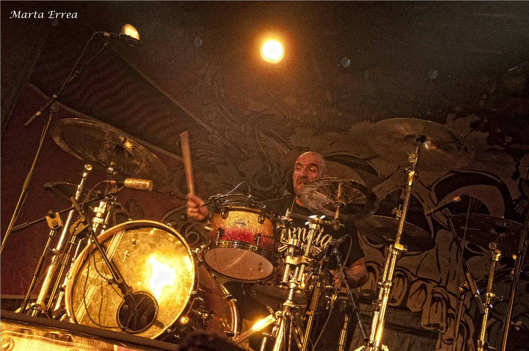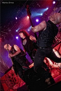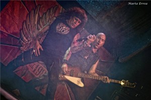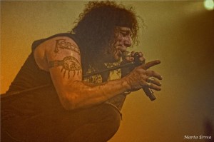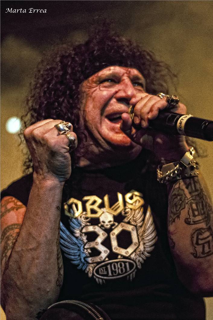 A las nueve menos cuarto de la noche, y después de una épica introducción que abría poco a poco el telón del escenario y con él el tarro de las esencias del mejor heavy rock, salieron a escena unos esperadísimos Obús, que abrieron el show con la preciosa ”Corre Mamón”, rescatada de su exitoso último disco titulado “Cállate”, y al que siguieron “Más Que Un Dios”, la omnipresente “La Raya”, “Autopista”, tema con el que Fortu nos demostró el buen estado de sus cuerdas vocales, “Necesito Más”, “El Que Más”, y una magistral interpretación de “Pesadilla Nuclear” (¡cuantas veces habrán tocado esta canción en directo!). Para entonces un inmenso Fortu ya se había metido al público en el bolsillo con miles de poses cargadas de adrenalina sexual que contagiaban la entrega del “frontman” a los allí presentes. Y tanta adrenalina hizo que en el tema “Dame Amor”, volaran hasta el escenario un par de sujetadores que Fortu, que cantó gran parte de la canción de cuclillas en el escenario “insinuándose” a las féminas de la primera fila, lució con orgullo. Pusieron punto y seguido a una inolvidable primera parte del concierto los temas “Viviré” y “Juego Sucio”, ambos rescatados de su exitoso tercer disco, “El Que Más”, del que descargaron la mayoría de temas (uno de los mejores trabajos de Obús y el que consagró definitivamente a la banda), con un Fortu que en pleno éxtasis musical y haciendo equilibrios subido a la plataforma de la batería nos gritaba “esos cuernos. Ronnie James Dio”, en un claro homenaje al que fuera cantante de Black Sabbath, fallecido hace casi dos años.