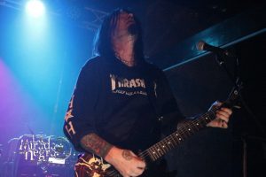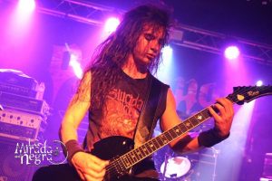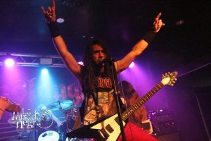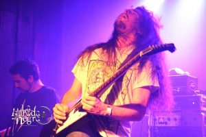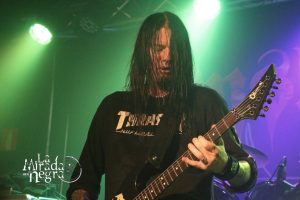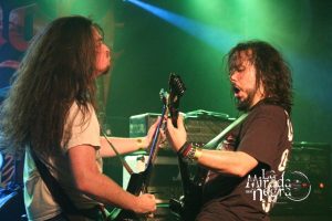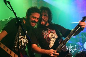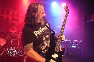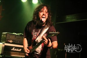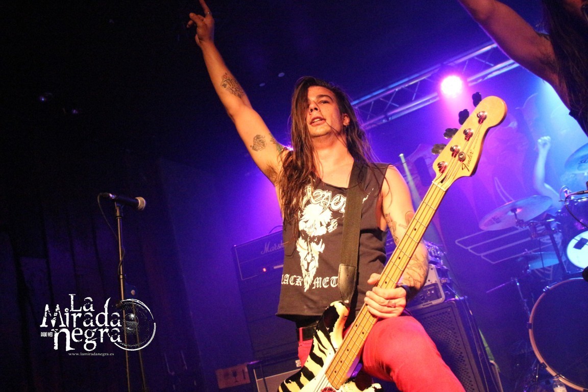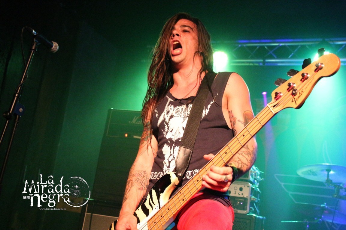 De hecho, aunque alguno luciera la camiseta de Exarsis en el escenario los que estaban tocando cando llegamos un pelín tarde a la sala eran Chronosphere, que con nervio y entrega desgranaron una buena colección representativa de lo hecho en sus tres discos editados hasta la fecha, rematando con un “Ace Of Spades” de Motörhead donde su bajista terminaría entre el público. Banda que disfruta de lo que hace ahí arriba y que busca que no cesen unos pogos que esta noche serían habituales con las cuatro bandas.