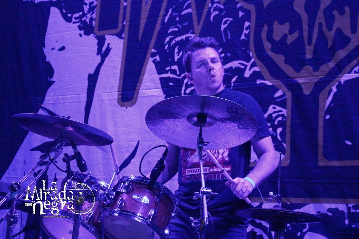 Con Till Death Do Us Part desarrollan una propuesta muy experimental que no pareció ser del todo entendida por la parroquia, aunque personalmente creo que merece escuchas y una oportunidad. Tienen un sonido muy actual y alternativo, sugerente y atmosférico, pero a la vez muy pesado y con un margen para la teatralidad que los componentes aprovechan sobre las tablas. Emily Tate y Kieran Robertsosn parecen entenderse muy bien, con el guitarrista interactuando muchísimo con la vocalista y aportando algunas voces agresivas a sus canciones. No es que levantara una gran respuesta entre el personal, muy predispuesto para la banda principal. No sé si seré el único entre los presentes al que, al menos, le pareció interesante.