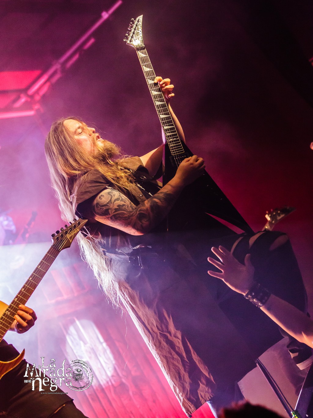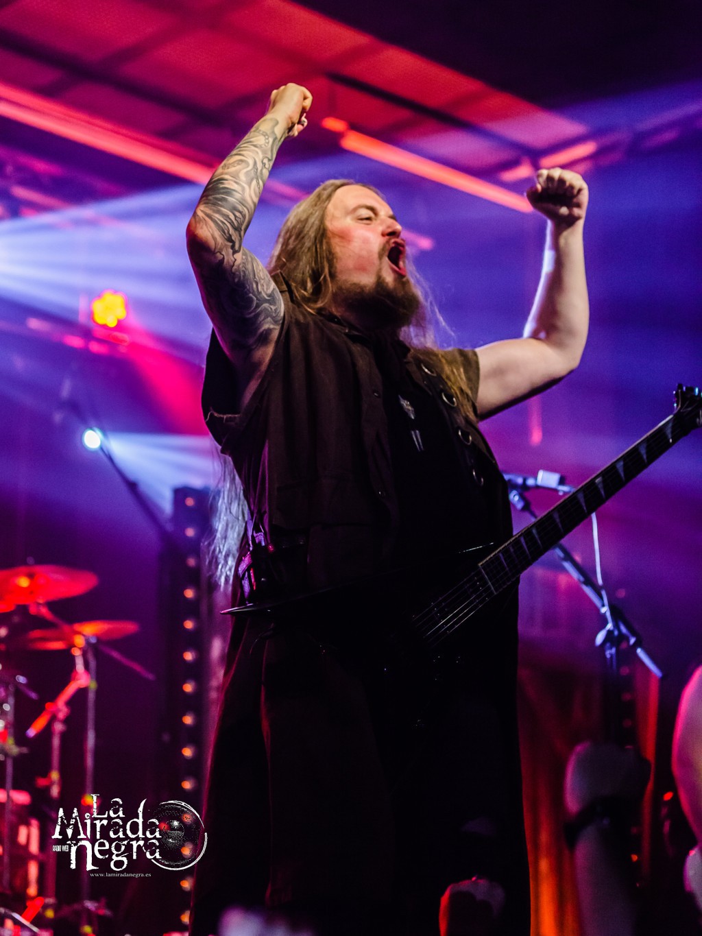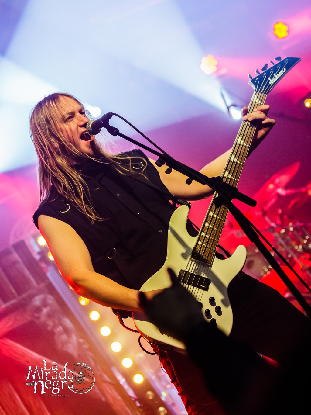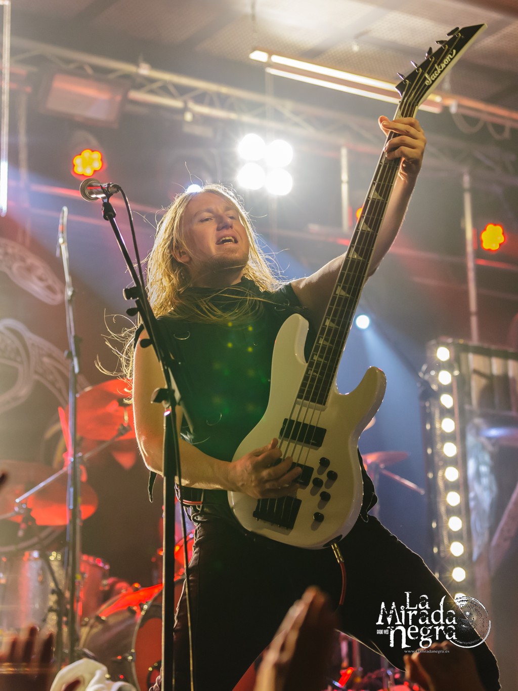 El disparo de confeti al final de “Gunman” animaría la fiesta, continuada por “Deaf Among Blind” y sobre todo un “Sorrows Is Your Tale” que cosechó una reacción del público espectacular. Público al que agradeció su asistencia el guitarrista y vocalista Sebastian “Seeb” Leverman tras “The Lord Of The Flies”, al que sucedió un envolvente “Come With Me To The Other Side” donde la banda suple elegantemente la colaboración de Liv Kristine en el estudio.