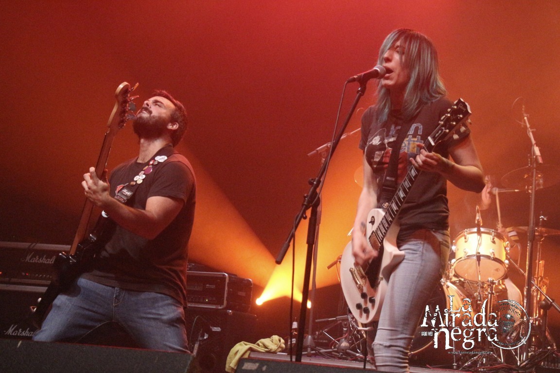 Solo quedaba la recta final que fue tan intensa como toda la descarga, con un “La Lucha Es El Camino” de lo más rabioso que a modo de bises nos dejaba otro recuerdo a su primera obra con “La Piel” y el himno definitivo que parece haberse convertido en el clásico de clásicos de su trayectoria “No Es No”, donde Pepe de Turbofuckers se subió al escenario para tocar el bajo, con su presencia rodeada de todos los invitados y los miembros de Las Sexpeares más algún infiltrado. Final a lo grande para una noche memorable donde se respiró el cariño con el que se está viviendo un concierto desde arriba del escenario y ello se transmite a todos los que la vivimos desde abajo.