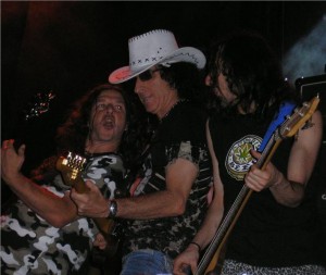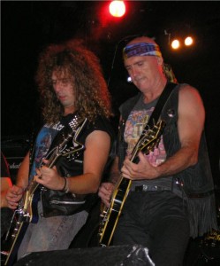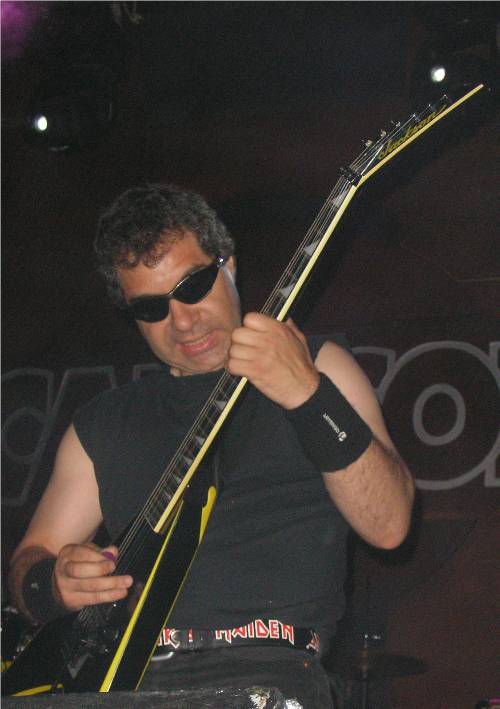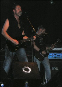 Faltaban cinco minutos para que el reloj marcara las diez en punto y Harakiri, proyecto personal del guitarrista Miguel A. López, (quien ha prestado su talento instrumental a grupos como Pánzer, Coz, o Bella Bestia, por citar algunos), salían al escenario para dar como es habitual en ellos, el mil por cien de su potencial escénico. Liderados esta vez por Tony León, quién fuera cantante y guitarrista de los míticos Rosa Negra, muy bien arropado por unos siempre espectaculares Jose Luis al bajo y “Cachorro”, a la guitarra, hizo que temas como “Ser El Mejor”,“Bebí Tu Sangre”, “Entre Tinieblas”, o la improvisada introducción del tema “Espejo Del Agujero”, rescatado del primer disco homónimo de Rosa Negra, condujeran al respetable hacia el deleite y la diversión sin mesura. Harakiri es un grupo al que el futuro le debe el espacio vital de los grandes escenarios.
