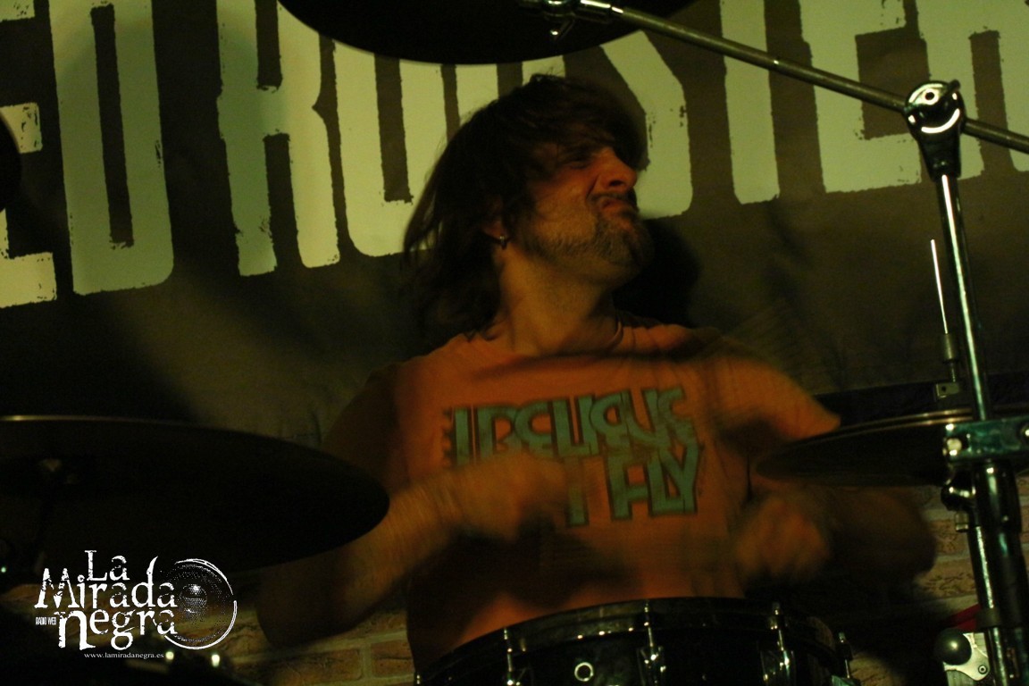 Por otro lado, tenemos una base rítmica no menos experimentada y que demuestra casar a la perfección. Juani al bajo hace una gran labor, acoplándose fenomenalmente a un gran batería como Edu, con un pasado más que destacado en bandas como Anarko y Vhäldemar.