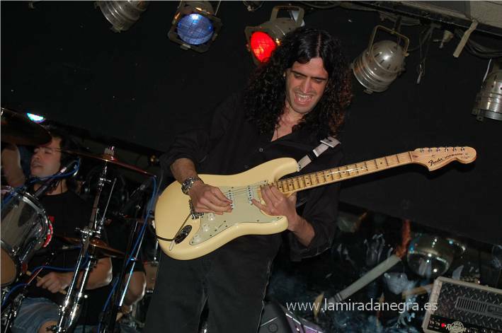 Destaco a Iñaki porque, bajo mi punto de vista, ofreció todo un recital de voz y de saber estar sobre las tablas. Pero es evidente que en un grupo tributo a Yngwie el guitarrista va a destacar. Con su Fender Stratocaster blanca, no podía ser de otra manera, Xabi desplegó esos solos con total maestría y con un sonido bastante fiel, a pesar de que esta noche confesaron no contar con su ampli y sufrir por ello. No contaron con mucho tiempo, lo que pudo ser culpable de que se quedaran fuera temas que yo imaginaba imprescindibles como “Heaven Tonight”. Pero nos quedamos con los que hubo, que también fueron válidos. Ahí quedó patente con toda la clase ese “Liar” de la época más clásica del guitarrista sueco, pasando por la época de Mike Vescera con “Vengeance” y sin dejar de lado temas instrumentales en los que la formación demostró hacer esto a la altura necesaria para que les tomemos en serio. Ahí quedaron “Evil Eye” o el más extenso “Paganini-Adagio”, con el duelo formidable de guitarra y teclado. Delicioso me pareció “You Don´t Remember, I´ll Never Forget”,antes de terminar con “Never Die” y “I´ll See The Light”, en los que (perdonad que me reitere) la voz de Iñaki me pareció estar a la par de cualquier cantante internacional. Haciendo estos conciertos, teniendo en cuenta como funcionan hoy en día los grupos de versiones, no tardarán en tener un reconocimiento. Solo falta que Xabi se curre un poco más la pose de Yngwie, que este queda un pelín modesto al lado del divo. Romper la guitarra no se lo vamos a pedir, solo que la siga tocando así…