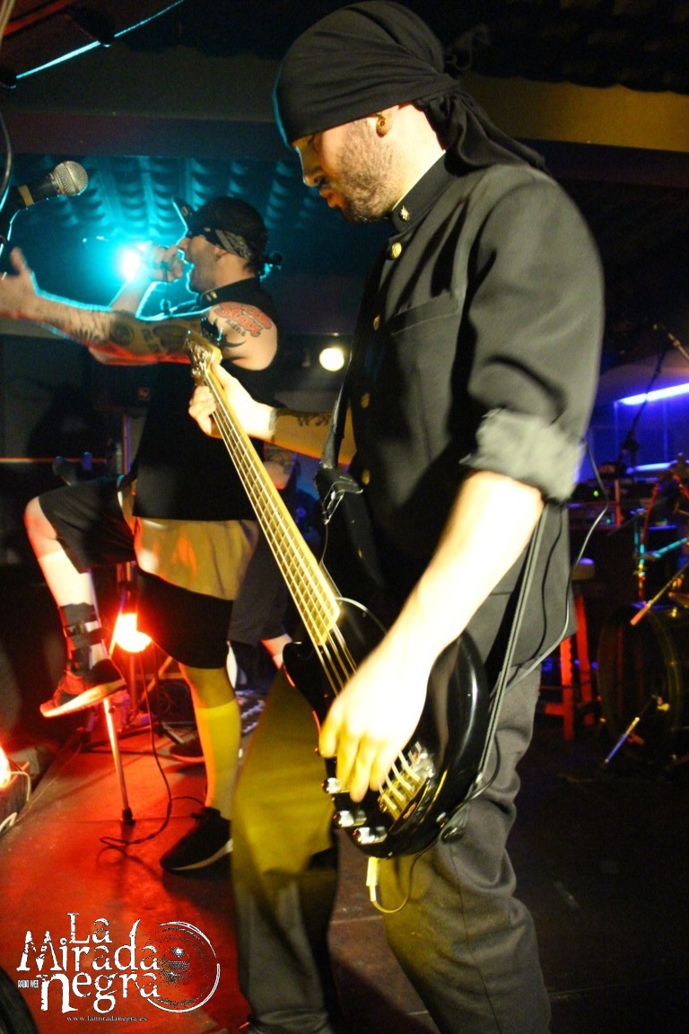 Así que el ambiente nos sorprendió caldeado cuando recién llegados de hacer nuestro programa de radio entramos por la puerta y Alerta estaba descargando ante una motivadora presencia de personal superior a las 100 almas. Los de Durango no pudieron descargar todo su set preparado para esta noche, pero dejaron buena muestra del potencial expuesto en su trabajo “Siempre Más Fuertes”. Así fue su repertorio, cada tema tanto o más contundente, donde podemos destacar “Distancia”, “Temblarán” o el propio tema homónimo, que provocó (con su vocalista mezclado entre el público) los primeros pogos de la noche. Solo un preludio de lo que estaba por llegar, pero Alerta supieron captar la atención del respetable con mucho entusiasmo, demoledor sonido y mucha artillería en cada una de sus canciones. La banda de metalcore lleva ya varios años en la brecha, editando varias demos antes de su debut discográfico, y necesita oportunidades como esta para llegar a la gente, algo que toman con muchas ganas. Seguro que se les hizo muy corto el tiempo sobre las tablas.
