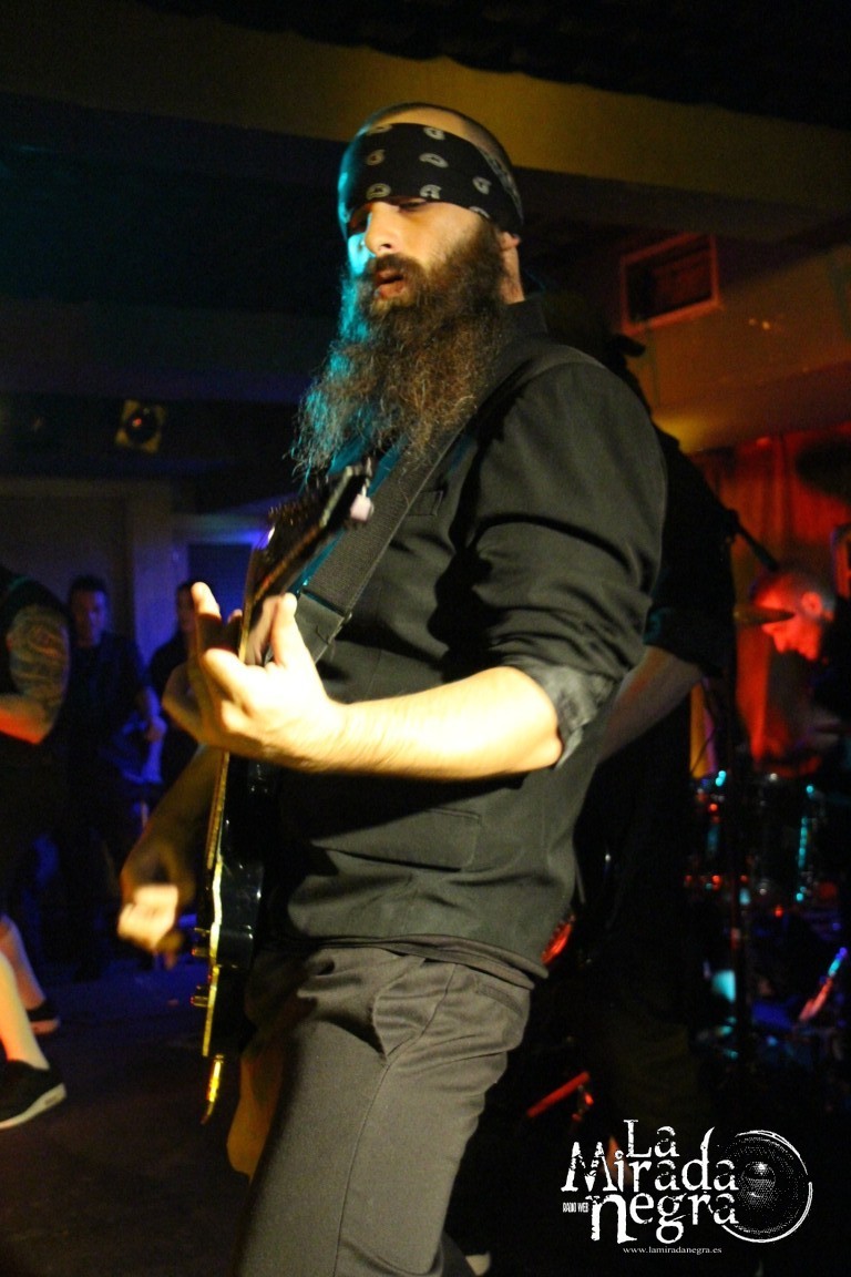 La noche comenzó con sorpresa cuando nos enteramos de que precisamente su vocalista Vithia se había fracturado el tobillo (ya digo al final de esta crónica que este grupo pisa fuerte y aquí estaba la prueba). Dos muletas le sirvieron para llegar hasta el escenario. Pese a este percance el grupo dio una auténtica demostración de fortaleza, agresividad y potencia. Incluso el propio cantante acabó desprendiéndose de las muletas para acercarse peligrosamente a unas primeras filas que se habían convertido desde el principio en una pequeña batalla campal.