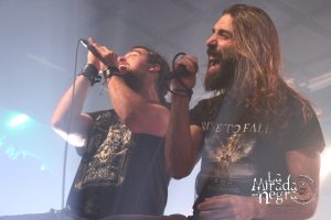 “Infected Wounds”, “Unknown Presence” y “Forbidden Lullaby” arrancaron la tormenta sonora de Rise To Fall. Banda que sigue funcionando con una formación bastante estable, de resultado impecable sobre un escenario. Pueden dar a cualquiera una lección de cómo facturar death melódico de marca sueca. Si no les conociéramos y nos los presentaran como una banda de aquellas latitudes no creo que nadie se sorprendiera.