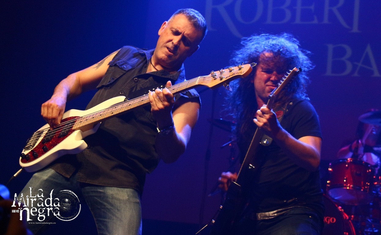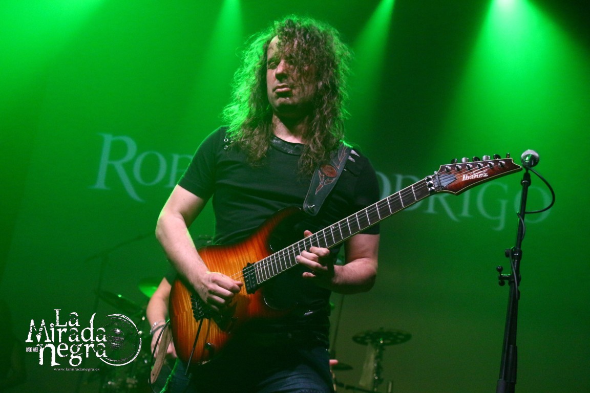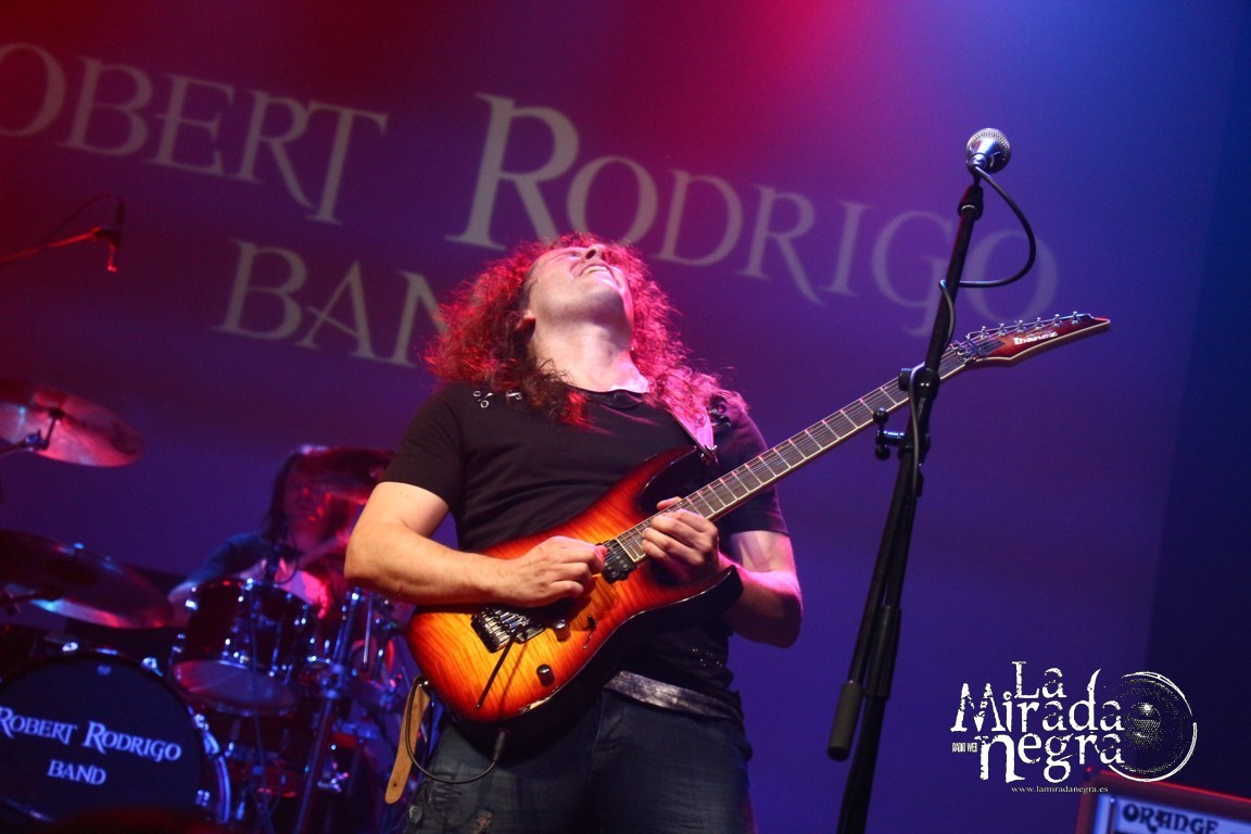 Ese nombre era el de Robert Rodrigo Band. Un nombre que se exhibiría durante toda la actuación al fondo del escenario y que parecía verse más grande a medida que la actuación de una banda inconmensurable nos iba deslumbrando en cada uno de los tramos, bien con la voz estelar de Gioeli o con los temas instrumentales de un Robert Rodrigo pletórico y espectacular adquiriendo el protagonismo que le correspondía y merecía junto a los no menos espectaculares en su labor Pako Martinez en la batería y Miguel Manjón en el bajo, todo un seguro de vida para cualquier solista.