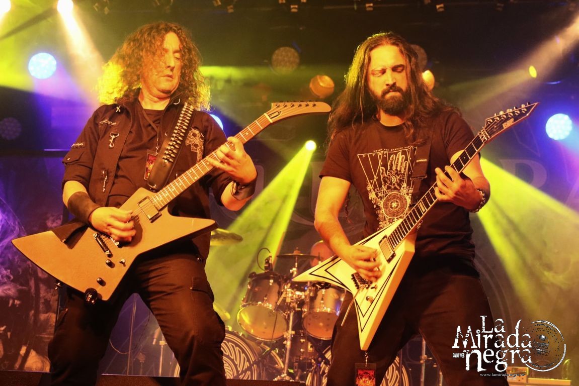 Tras ese himno del icónico “Kings Of Metal” tocaba repasar un trabajo no menos añorado por los auténticos fans de Manowar, como es ese “Sign Of The Hammer” que tuvo mucho protagonismo en este inicio con “The Oath”, el homónimo y “Thor”. Y ya con “Wheels Of Fire” llegaría una de las apoteosis de la noche con la peña coreando el estribillo. Precisamente pudo ser un buen momento para sacarnos de dudas y demostrar que también apoyaría su última obra ya en solitario. Y como suele ocurrir, eso provocó un bajón de intensidad entre los presentes, pero considero que “Denied By The Cross” es buen reflejo de que Ross The Boss y su banda están en disposición de seguir ofreciendo buenas canciones. Solo que los clásicos tiran demasiado. Pero creo que es de agradecer que al menos defendieran tres temas de ese “Born Of Fire” en cuya gira de presentación estábamos. Luego caerían “Glory To The Slain” y “Maiden Of Shadow”. Si bien no creo que se puedan comparar con los temas de Manowar, al menos la banda los bordó y Marc se encontró mucho más cómodo que teniendo que adaptar los temas originalmente cantados por Eric Adams, a los que les tiene que dar un giro, sobre todo en los tonos más graves.