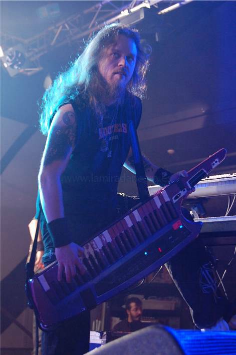 En estas tuvimos a un lujo de banda actuando simplemente media hora en la que solo pudimos ver seis temas. Suficiente para alucinar con su calidad, pero escaso para verles con sus mejores galas. La banda ha editado la segunda parte del mencionado “Return To Heaven Denied”, motivo por el que este regreso a los escenarios merecería más notoriedad. De esa obra nos descargaron tres deliciosos temas. El inicial “The Shooting Star”, “A Chance” y “Sailors Of Time”. Hubiera sido lógico haber completado el repertorio con otros tantos temas de la primera parte, pero si bien “New Horizons” y “Moonlight” pertenecen a aquel disco de 1998, la banda también incluyó “In The Shade” del EP “Timeless Crime” un poco posterior, pero con el toque dorado de aquellos años de creatividad. En este tema Roberto Tiranti dio un recital de agudos espectacular, sin perder la fuerza en ningún momento y demostrando que es uno de los vocalistas más sensacionales que hoy podemos ver en un escenario. Estuvo sublime en todas las partes, ya sean las melódicas o en las que le tocaba desgañitarse. Olaf Thorsen se lució en cada solo de guitarra, compitiendo con el teclado de su compañero en solos espectaculares. A pesar de que el grupo parecía un tanto reservado por su situación en el cartel, no pararon de solicitar palmas y de pedir la respuesta del público. Este, por su parte, gustoso ante lo que presenciaba no dudó en reaccionar. Brilló Labyrinth en una situación inmerecida. Terminado el concierto ellos mismos se encargaron de recoger sus bártulos mientras que la gente seguía aplaudiéndoles. Pensaba que su consideración era suficiente como para contar con unos pipas que les hagan ese trabajo sucio, pero ya vemos que la crisis afecta también a las estrellas internacionales, aunque su exposición musical, lo que vale, estuvo a la altura de unos grandes.