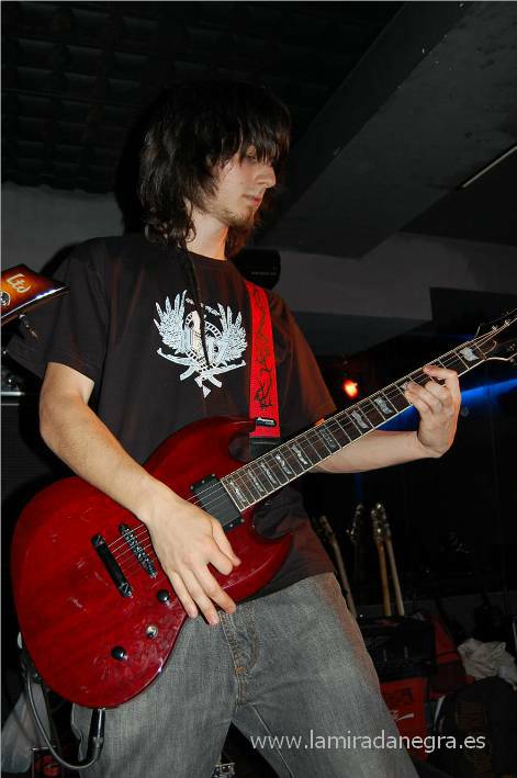 Cuando ellos subieron a las tablas una revolución ocurrió en la sala Edaska. La gente se vio obligada a abrirse, ya que el frontman no dejó de bajar del escenario, que se le quedaba pequeño, para en ocasiones incluso montar un pogo del que él mismo formaba parte. Toda esta entrega que les puso a chorrear de sudor y que subió la temperatura general del recinto la acompañan de una calidad instrumental sorprendente en unos chicos tan jóvenes. A pesar de ser una banda que esta misma noche celebraban su primer año de existencia, pareciera que llevaran mucho más tiempo curtiendo su estilo y ofreciendo este rodaje. Sus temas complejos, que ofrecen una diversidad de matices impredecibles, fueron llevados al directo de una manera incontestable con una contundencia que no debe ocultar esa otra cara sensible y de mestizaje que el grupo ofrece. La sensación es que el techo se nos puede venir encima con ellos, pero no te los imagines como una martilleante banda más que sigue ese metalcore tan de moda en los últimos años, porque aquí hay un trabajo de composición y arreglos mucho mayor que en directo se puede apreciar muy claramente. Disculpad que no mencione ninguno de sus temas, ya que aún no controlo sus títulos. Esperaremos para memorizarlos a que nos presenten su primer trabajo, que a nada que tenga un tratamiento adecuado puede ser una bomba metalera estallando en nuestros oídos. Un grupo que muestra todo esto sobre el escenario ya está trabajada para dar ese paso que esperemos pronto sea posible. De mientras, que no cesen de ofrecer este despliegue en escena donde terminaron por provocar en el público la reacción que deseaban, poniendo en un momento dado a todo el presente a hacer el símbolo de un sol juntando el dedo pulgar e índice y manteniendo los otros levantados, símbolo de la banda. No dejéis de tenerles en cuenta como una banda con mucho futuro.