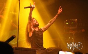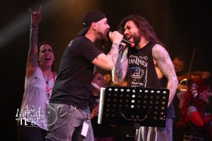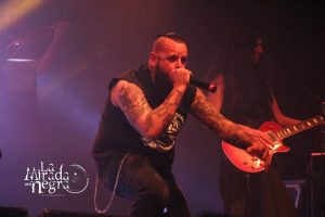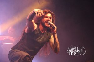 Tras “Cuestión De Fe” llegó otro de los momentos visualmente más atractivos del concierto, con las bailarinas haciendo girar unos paraguas en “Sin Amar”. “Impotencia II” contó con la colaboración de Korpa, haciendo guturales junto a Leo, entregándose y convirtiendo su momento sobre las tablas en uno de los más intensos de la descarga. A Leo se le ve a gusto alternando su voz melódica con otra agresiva, algo ya explotado por el vocalista en su banda. Y aunque no abusa, también rompe la voz cada vez más en momentos puntuales, aumentando los contrastes en los oscuros temas de Stravaganzza.