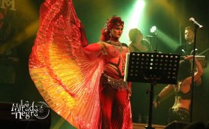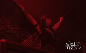 Cada acto contó con su respectiva intro hablada, dando paso a cada una de las escenas que la banda fue representando, con las bailarinas no solo haciendo de tal sino de actrices que encarnaron cada escena. Así se abrió la noche con “Dios”, uno de esos temas clásicos e infalibles en su repertorio, repasando su debut con otros dos temas, el plagado de melancolía “Y En Soledad Me Lamento” y “Mi Tempestad”