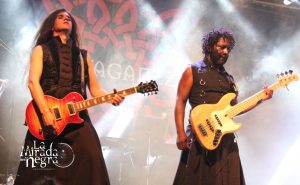 “Un Millón De Sueños” dio paso a “Raíces”, un tema extenso y ampuloso que uno pensaría que podría perder efectividad en directo, pero el trabajo de Stravaganza para sus conciertos hace que temas de esta grandilocuencia, con un montón de capas, puedan incluso aumentar las sensaciones con la aportación de todos los músicos. Era el colofón al repaso en orden cronológico de sus trabajos, pero todos esperábamos esos bises donde sabíamos que no faltaría “Hjo De La Luna” de Mecano. Un tema de pop que siempre tuvo alma gótica, y vaya si Stravaganzza supieron encontrarla. El remate lo puso otra versión, en este caso la de “Eloise” de Tino Casal, que registraran en “Requiem”. Supuso un final festivo, con asistentes y miembros de la organización incluso acompañando a todos los protagonistas que despidieron a lo grande la noche con un tema que el grupo utilizó a modo de absoluta desinhibición, rompiendo un tanto la imagen sobria de una banda que cuida mucho todos los aspectos de su actuación, cada detalle sonoro y visual, pero que también es capaz de mostrar en este final una cara mucho mas desenfadada.