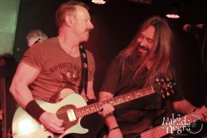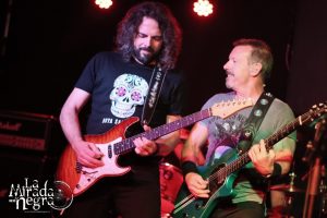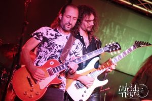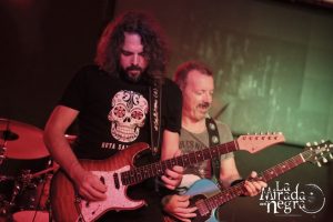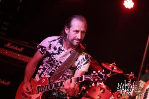 Se respiró muy buen rollo, con vaciles constantes, en la vieja guardia del grupo conformada por Mariano Gil “Rones” y Nacho Jiménez. Al eterno guitarrista y vocalista de la banda y al incombustible teclista se le unen ahora ya definitivamente el talentoso Raúl Serrano al bajo y dos joyas que no puedo dejar de mencionar por lo que demostraron en esta descarga. Chus Gancedo en la batería es un valor seguro y Roberto Flores “Flopo” en la guitarra es un musicazo que capta de forma excelente el diferente sentimiento de cada tema, demostrando además de una calidad ejecutora un tacto en sus dedos que dio en cada momento la sensibilidad que cada canción requería.