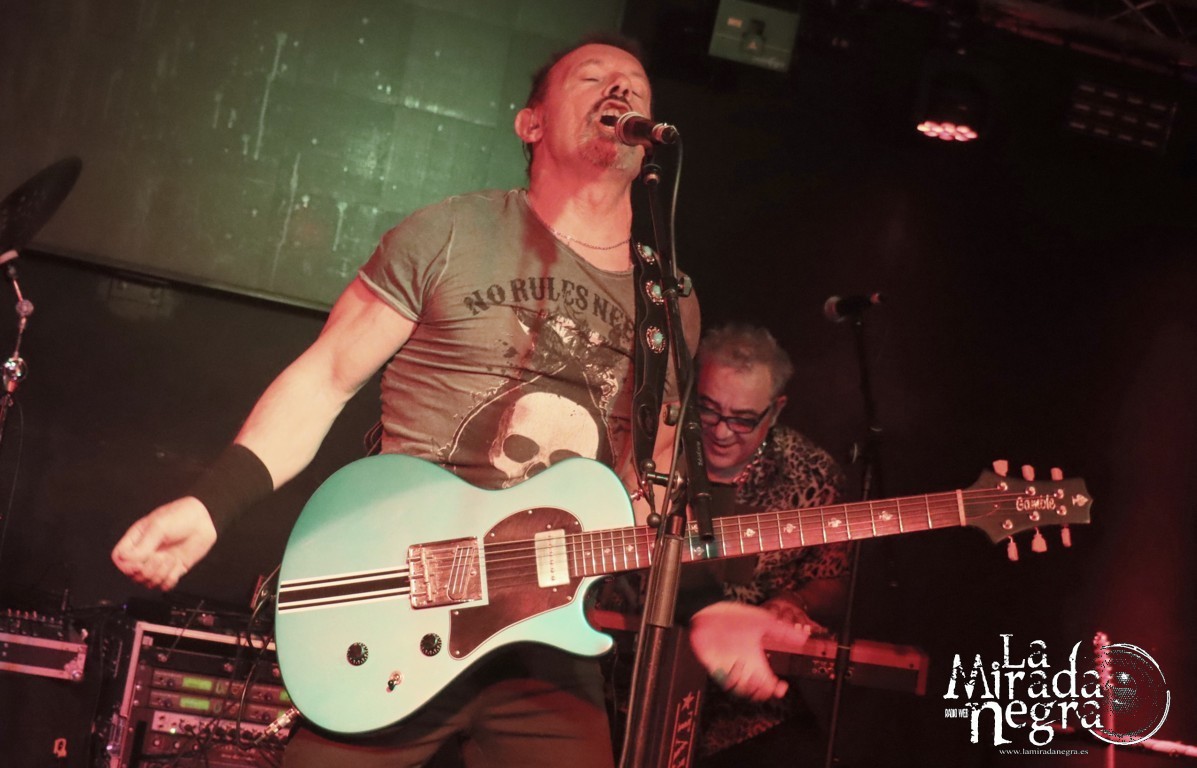 Se respiró muy buen rollo, con vaciles constantes, en la vieja guardia del grupo conformada por Mariano Gil “Rones” y Nacho Jiménez. Al eterno guitarrista y vocalista de la banda y al incombustible teclista se le unen ahora ya definitivamente el talentoso Raúl Serrano al bajo y dos joyas que no puedo dejar de mencionar por lo que demostraron en esta descarga. Chus Gancedo en la batería es un valor seguro y Roberto Flores “Flopo” en la guitarra es un musicazo que capta de forma excelente el diferente sentimiento de cada tema, demostrando además de una calidad ejecutora un tacto en sus dedos que dio en cada momento la sensibilidad que cada canción requería.