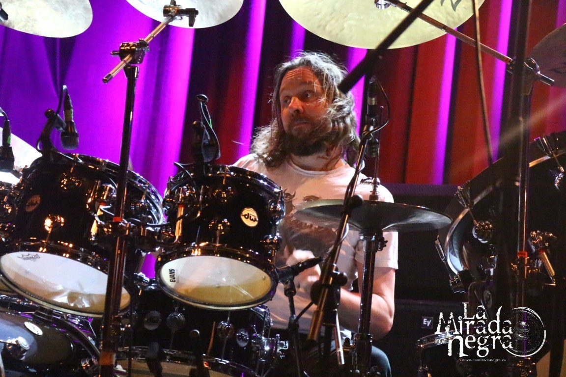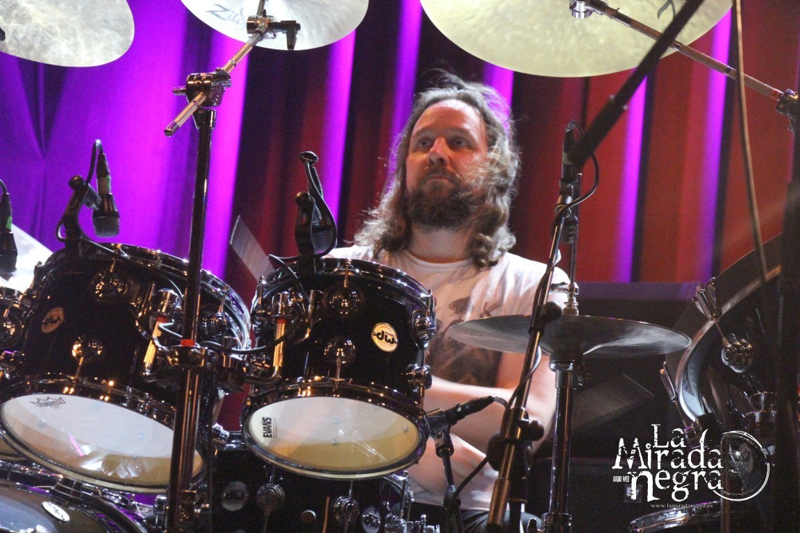 Y si de espectacularidad hay que hablar el solo de batería de Marco Minnemann mediado “Get It Like That” fue probablemente el punto álgido en cuanto a demostración de condiciones. Este hombre es capaz de chascar las baquetas mientras toca platos, caja, bombos, timbales… Llegó dentro de un tema que por otro lado también me pareció de los momentos destacados, terminando con un gracioso juego entre el batería y el bajista, el primero haciendo sonar sobre el micro un cerdito de goma y el segundo haciendo lo propio con un muñeco con forma de pollo que le sucedía en ese sonido estridente, para carcajada generalizada. Hasta puntos sarcásticos como este los hacían sonar bien estos maestros.