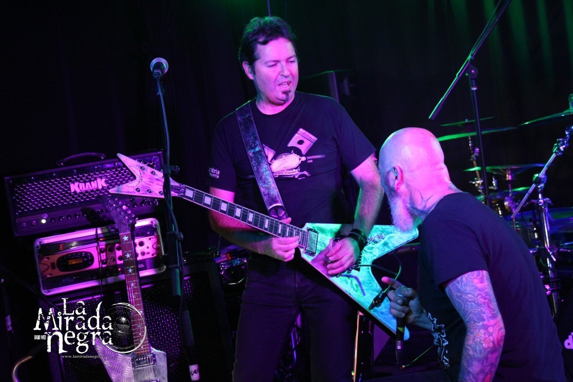 Prescindiríamos de su imponente voz, potente y con un registro totalmente reconocible que parece no tener fin cuando emerge de su garganta como un torrente de energía y pasión; en el instrumental “Somnum”, que es todo un temazo de metal progresivo para lucimiento de toda la formación. Muy contundente y cañero, con cambios de ritmo brutales y excelentes solos de guitarra. Tras ello volvía a formar parte activa de la descarga el público con “Un Mundo Del Revés”, single de presentación de su última obra.