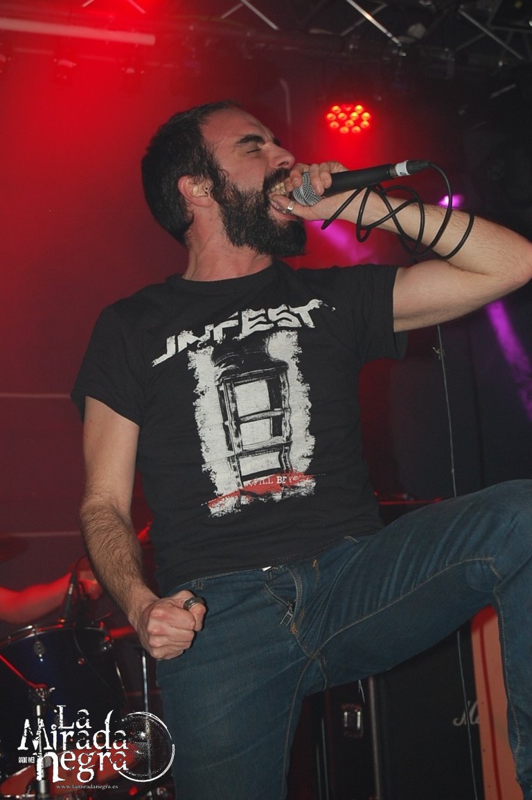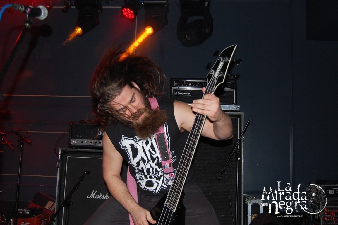 No nos adelantemos hasta el final de la noche tan rápido y recordemos que el cartel se abría con los lekeitiarras Titadine, que atronaron con su locura grindcore de vieja escuela. Cómo recuerdan a los Napalm Deth del principio. No les habrán quitado el record de tener la canción más corta de la historia, pero acabarán compitiendo por ello de seguir así. Ramalazos de furia se fueron sucediendo en su descarga excediendo los límites de la brutalidad más desatada, sin posibilidad casi ni de mover un músculo de nuestro cuerpo incapaz de seguir un ritmo, limitándonos a aguantar estos envites como buenamente podíamos. Y aunque parezca lo contrario esto es hablar bien sobre ellos ya que ese es uno de los objetivos de su anarquía sonora. Anticomerciales hasta para los seguidores del metal extremo menos dados a su tendencia grind, pero brindaron un concierto con mucha motivación desatando toda su adrenalina en temas a los que no les encontraras pies ni cabeza… al menos en su debido sitio. Una locura llevada al terreno que precisamente buscan, para poner a prueba nuestras neuronas.