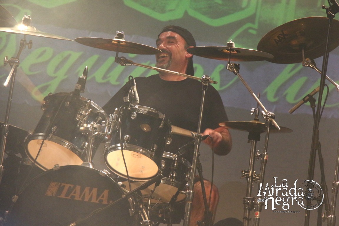 No sé si esa vacante en el micro solista será algo temporal o definitivo, pero lo cierto es que me eché a temblar cuando vi que Chefy sufría muchísimo en los primeros temas, Tras “Absurda Sociedad” o “Seguimos Luchando” hubiera apostado a que iba a acabar completamente afónico. Sin embargo, se rehízo bastante bien bordando un gran concierto junto a su banda, dando con su voz a las canciones, ahora en formato de trío, un aspecto más cercano a unos aguerridos Motörhead. Así que la versión de “El As De Espadas” les vendría como anillo al dedo. No sería la única ya que también se acordaron de su revisión de “Antisocial” donde aparecería en escena Carlos (El Tinonino Que Corre) de Calcetines y Cachetes para echarles un cable y animar el cotarro como solo él sabe.