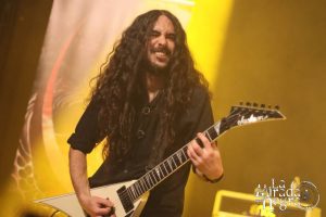 “Sin Aliento” incrementaba el pulso para avanzar en el concierto con “La Cuna Del Silencio” y un “Sobre El Cadalso” en el que vimos brillar como solo él puede al maestro Robert Rodrigo sobre las tablas. Maestro literalmente de Yeray y de Borja Aguirre, cuya labor en coros y apoyo al la guitarra principal es fundamental en la banda. Al margen su actitud en escena transmite un buen rollo siempre bienvenido.