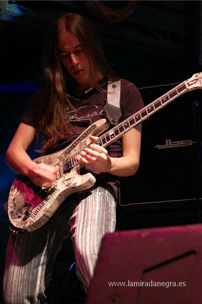 Después de haber calcado el inicio de su nueva obra rescató de la misma dos temas más. “Reflejos Del Ayer”, que continuó aumentando la conexión con la concurrencia, y el emotivo “La Lluvia Quedó Atrás”, iniciado con armónica por parte del propio Jorge. Para el final quiso dejar el homenaje a Gary Moore con el archiconocido “Over The Hills”, que pone un punto festivo final, aunque tanto me gusta la obra que Jorge Salán lleva a sus espaldas que yo me hubiera quedado con algún tema propio más o me hubiera decantado por ese “Dedication” de Thin Lizzy que tan bien plasmara hace unos años en estudio. Habrá que esperar a ver al guitarrista en un concierto propio con un set completo para saciarse, porque los 7 temas que cayeron se centraron en presentar fundamentalmente su nueva obra y este joven tiene mucha más historia detrás. Eso sí, fue una descarga tan corta como convincente en lo musical, incluso en el aspecto vocal donde Jorge levanta algunas opiniones dispares. A mi me parece que ha mejorado mucho desde la primera vez que le vimos ante el micro y, lo más importante, creo que transmite mucho más sacando todo el sentimiento de sus propios dedos y su propia voz. Una unión que en otros artistas ha dado espléndidos resultados en el rock por encima de una técnica perfecta y que en el caso de Jorge también produce un contacto especial.