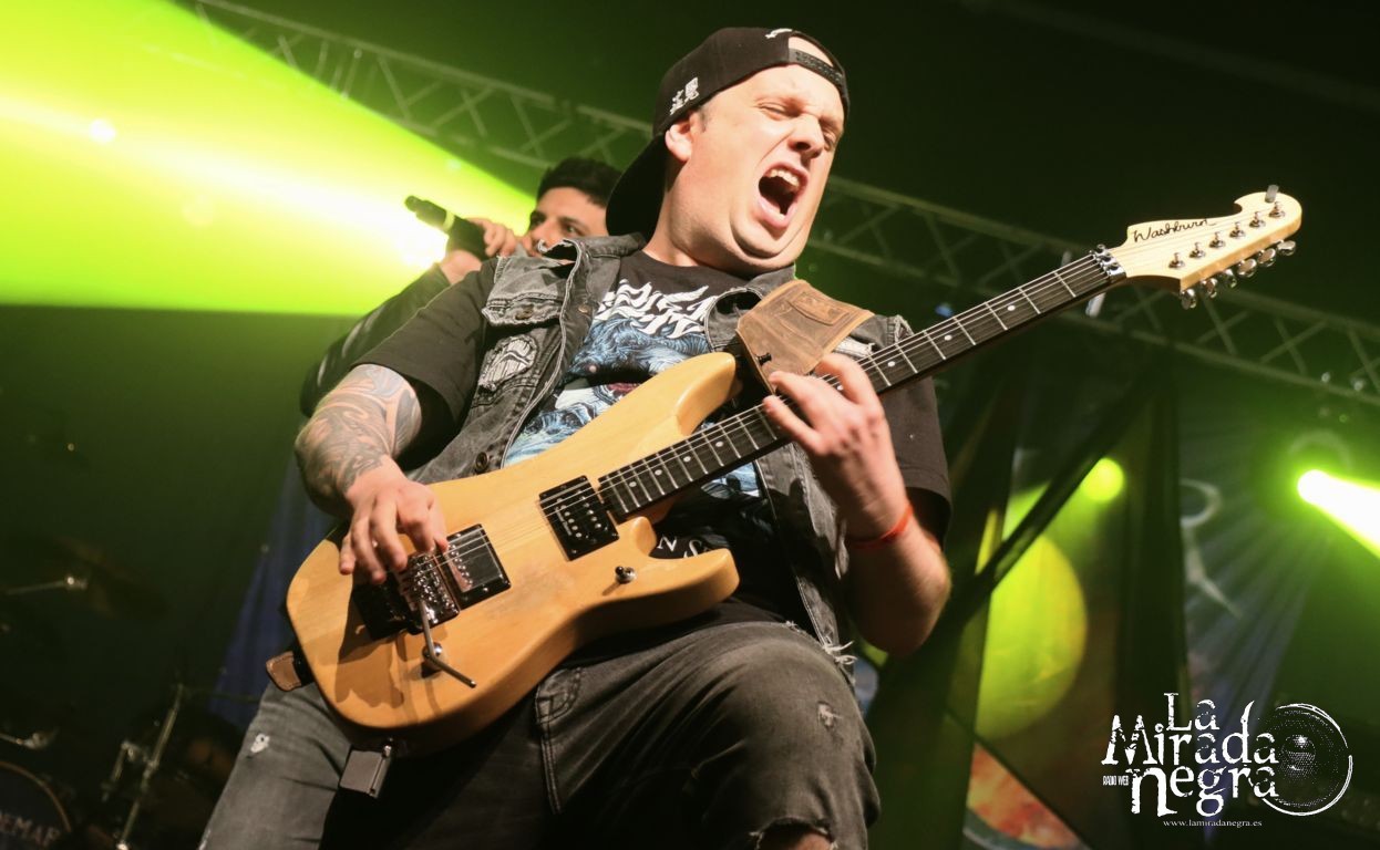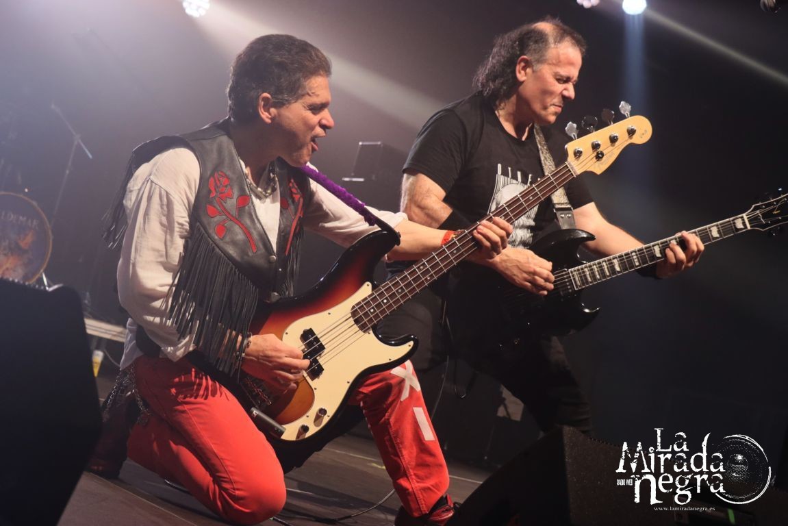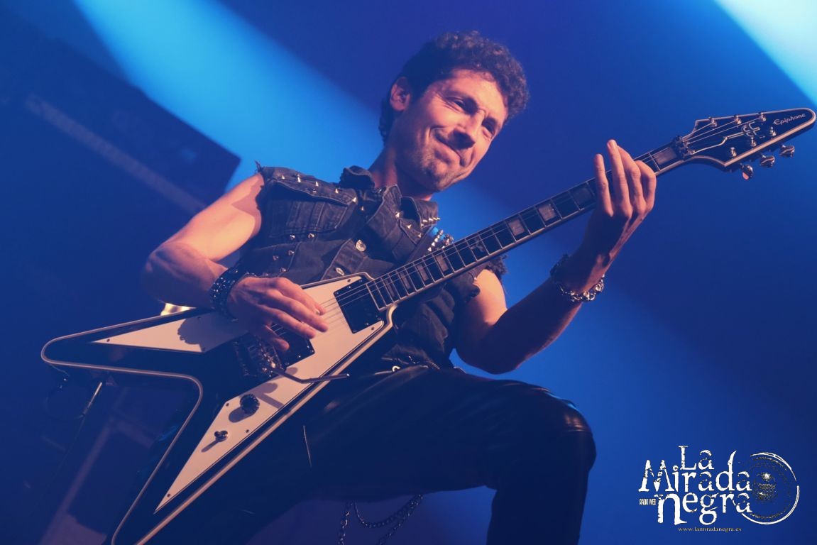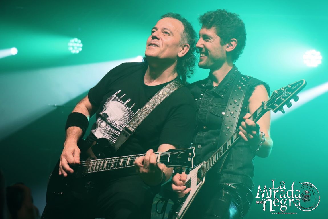El arrasador “Dusty Road” se uniría a “Breaking All The Rules”, con Cobelo en la batería. “Lost World” parecía amenazar con la despedida del grupo cuando Pedro se descolgó la guitarra y se la pasó a su compañero Carlos, que realizó un guiño al “Kingdom Come” de Manowar, pero sabíamos que no se iban a ir sin despedirse con el habitual “Energy”, donde apareció la última colaboración de la noche. Hugo Markaida de Rise To Fall, que para nada quedaría eclipsada por la aparición a la vez de Ruben Miranda Y Roma para acabar el concierto con los tres vocalistas en el escenario. Ante ello Hugo se marcó unos solos espectaculares. Y eso que yo recuerdo en su día decir que sus solos en Rise To Fall eran demasiado cortos. Pues aquí se soltó. La ocasión lo merecía.