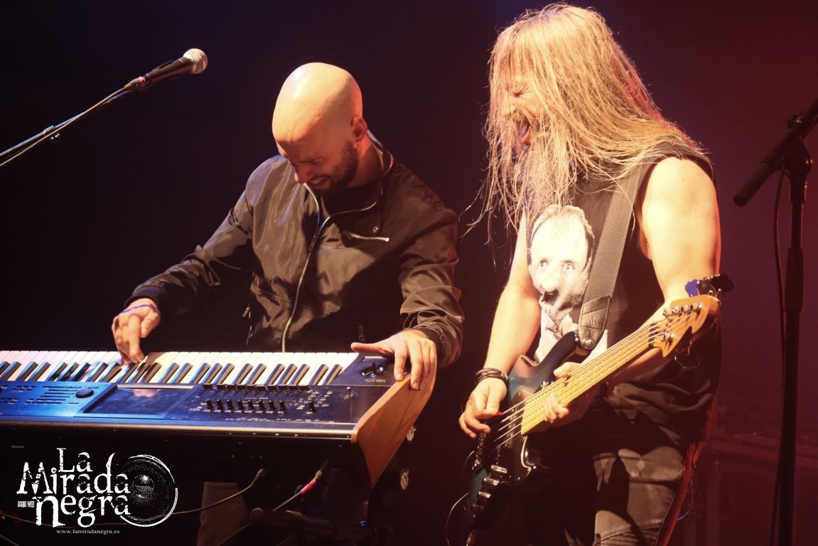 Además, el público llevaría en volandas a la banda. Para generar todo ello, un tipo como Carlos Escudero sabría de nuevo ganarse el favor de todos los presentes. Un tipo inimitable que se pasaría buena parte del concierto en el foso, prácticamente encima del público, o entre el mismo público, haciendo que allí todos lo pasáramos en grande. Hasta le llegamos a ver en primera fila admirando a sus propios compañeros. Un grupo tremendo, encabezado por Pedro Monge, cuyo virtuosismo no vamos a descubrir a día de hoy, acompañado por unos músicos de un nivel que no le va a la zaga y que aportan mucho nivel al grupo, sabiendo jugar muy bien su papel tanto Jonkol en las teclas, como Jandro en la batería y Raúl Serrano en el bajo. Lo que suman entre todos al resultado final de los temas queda reflejado en su última obra pero también en la forma en la que se han acoplado a los viejos temas.