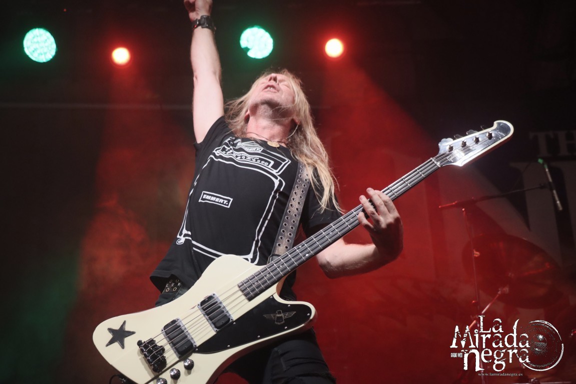 Todo ello lo despeñó el vocalista con la base de una formación de funcionamiento impecable, con muchos ojos puestos en el mítico, como denomino el vocalista a Herman Frank, pero con un trabajo fabuloso por parte de un grupo que sonó fenomenal para ir desgranando clásicos de los que hacen. babear a todo seguidor como “Take The Peace”, “Rock The Neighbours”, “Standing Like A Rocks”, “Feel The Fire”… Todo un elenco de viejos temas que hacían dudar sobre la apuesta de la banda por un presente que he comenzado destacando.