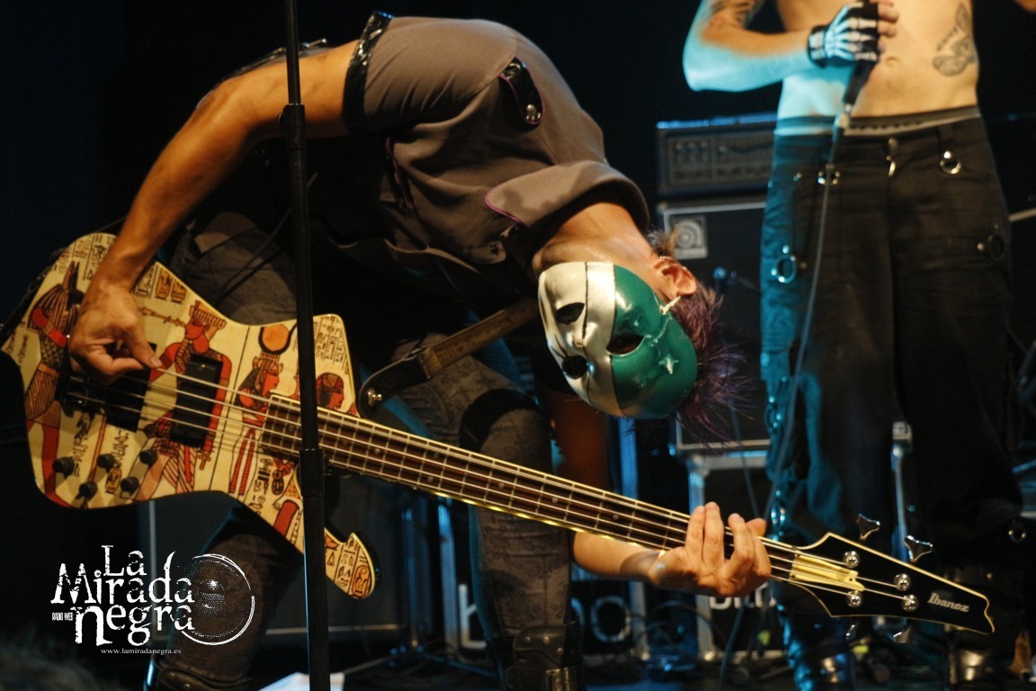 Mind Driller desde Alicante nos trajeron su aplastante metal industrial. Rammstein es una referencia más que clara para ellos, pero el conjugar tres vocalistas en escena les da un punto muy personal y diferente. A la voz agresiva masculina, la más orientada a los alemanes, hay que añadir la voz limpia femenina y otra voz masculina limpia que se conjugan de manera tan espectacular como su puesta en escena. Y es que los alicantinos cuidan el espectáculo como parte imprescindible de su propuesta. No solo con la imagen inicial, con un arranque en el que su vocalista arranca emergiendo de una caja y presentando este gran “Zirkus” (título de su segundo disco y del tema de apertura del concierto) con megáfono en mano; si no con unos disfraces e indumentarias que reflejan de forma escénica lo que nos cuentan temas como “Psycho”, uno de los visualmente mas llamativos con cada uno de los vocalistas engendrando a diferentes tipos de psicópatas, incluido el sexual.