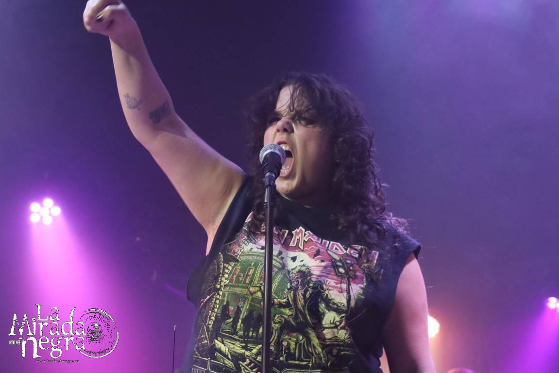 De hecho, el grupo que aparece como cuarteto en su web en esta gira apareció como un quinteto con la incorporación de una guitarrista más que dobló esas guitarras al más puro estilo de los primigenios Maiden o Judas Preist. Eso sí, cada uno de los temas que Vulvarine expone es un dardo directo que no da mucho lugar a escapar una vez caigas en sus garras.