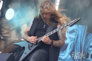 No pudimos ver el año pasado todo el despliegue en eléctrico de Eluveitie, que tuvieron el detalle de ofrecernos unos temas en acústico a cubierto en aquellos momentos de frustración general. En esta ocasión los suizos desplegaron sus mejores galas. Me pareció un poco titubeante el arranque con “Exile Of The Gods”, no se si por la ubicación en la que me encontraba en ese momento, o porque realmente había cierto desbarajuste sonoro que hacía que Fabienne Erni no acabara de ir a tono con sus compañeros, pero a partir de “Nil” todo se fue colocando en su sitio y con “Deathwalker” ya fluyeron por esas melodías folk en fusión con elementos del metal extremo por parte del aguerrido Chrigel Glanzmann, que combina muy bien su faceta instrumental con la de vocalista, aunque en el aspecto visual contar con un grupo tan nutrido de músicos, con el movimiento que también ofrecen los demás componentes y de forma especial la violinista Nicole Ansperger y la vocalista y arpista Fabienne Erni el espectáculo está garantizado. El resto lo hicieron canciones como “Aidus”, “Ategnatos” o “Inis Mona”, que cerraron una vistosa actuación en la que la banda plasmó todo ese colosal universo que engloba su fusión de estilos para ser algo diferente dentro del folk metal.