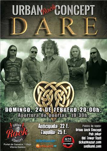 Los amantes del AOR estamos de enhorabuena porque los galeses Dare, liderados por Darren Wharton, estarán en el escenario de Urban Rock Concept, Vitoria el próximo domingo 24 de febrero del 2019 para deleitarnos con sus ya clásicas joyas de AOR. Esta es la gira especial de aniversario de su clásico «Out Of The Silence», recientemente reeditado.