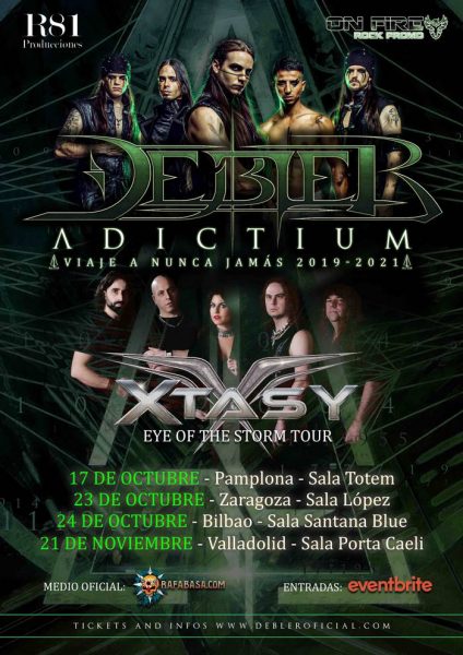Dos de nuestras bandas más internacionales, DEBLER en Latinoamérica y XTASY en Europa, presentarán sus respectivos nuevos discos, “ADICTIUM” y “EYE OF THE STORM”, tras sus estupendas críticas recibidas y conseguir entrar en listas de ventas, tanto en España como en Alemania.