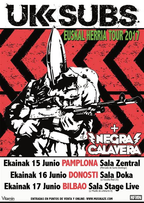 La legendaria banda de punk UK SUBS, visitará Pamplona, Donostia y Bilbao el mes de junio, acompañados de los rockeros Negracalavera.