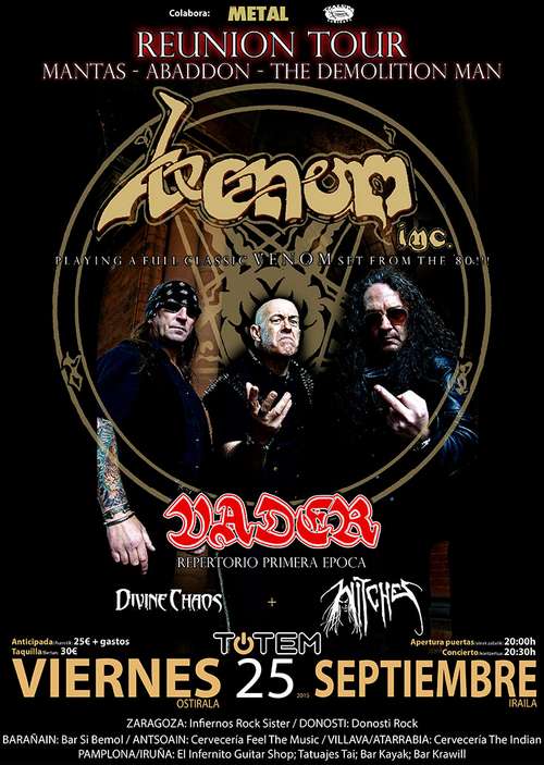 ESTE VIERNES VENOM INC. + VADER + WITCHES + DIVINE CHAOS EN LA TOTEM