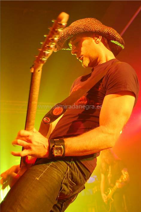 La actuación gustó a un público que respondió entusiasmado a una banda a la que es agradable ver disfrutar. Después de su reciente periplo en Barón Rojo es una alegría ver musicalmente vivos a Jose Martos y a Angel Arias. De este último es del que más se acuerda la gente como demostró el estruendo del público al ser presentado. A ellos se les ve a gusto y muy contentos con este nuevo retoño de su carrera. Manolo Arias sigue con esos movimientos hard rockeros un tanto sensuales con una sonrisa constante, mientras que Ignacio Prieto es un frontman de facultades. Aún así, me quedo con su actuación de hace unos años con Eden Lost teloneando entonces a TNT en el Kafe Antzokia de Bilbao. Entonces le vi con bastante más chispa, aunque el tío no para y ya en los primeros temas estuvo rodando por el suelo. En algunos temas fuerza demasiado los agudos y su voz melódica la considero más aprovechable en terrenos hard rockeros.