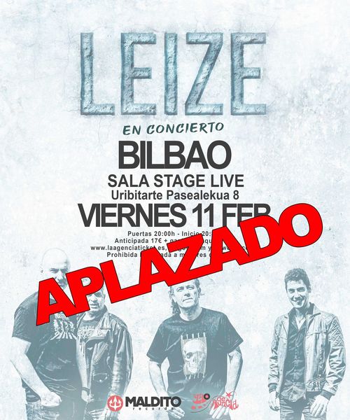 Aplazado el concierto que Leize iba a realizar el 11 de febrero en la sala Stage Live de Bilbao. Esperamos que pronto la banda anuncie nueva fecha.