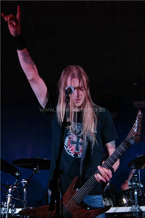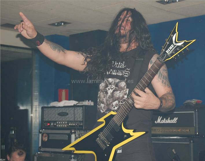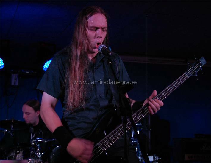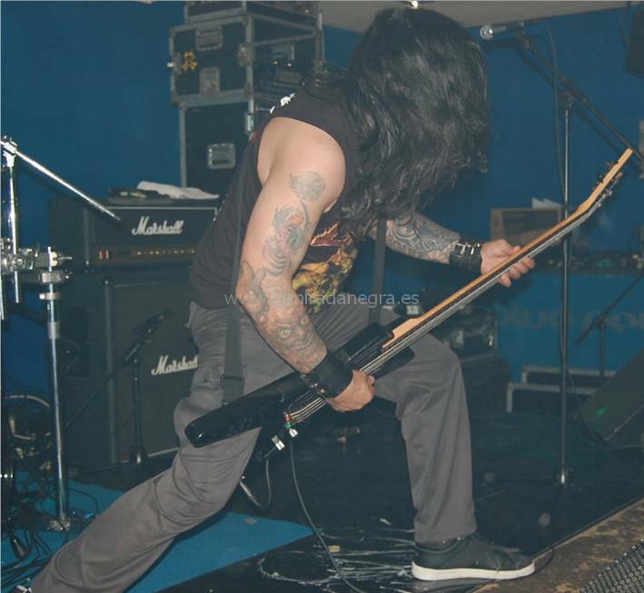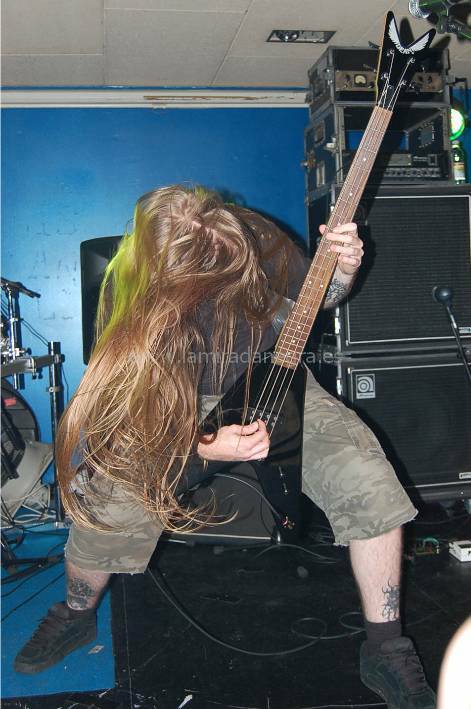 Los daneses CORPUS MORTALE fueron los primeros en salir a la palestra ante una escasísima audiencia. Estábamos cuatro y sin el de la pandereta. Sigo pensando lo mismo de siempre, qué desolador es para un grupo salir a tocar y no haber ni Txus (y lo se por experiencia propia). Pero aun así salieron con ganas y su brutal death metal nos calentó echando leches y empezó a encaminarnos a lo que nos esperaba después. “Postmortem Rape” y “Dehumanized” fueron claros ejemplos de un buen saber y buena ejecución de temas rápidos y directos. Una banda a tener en cuenta.