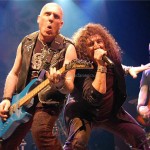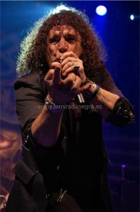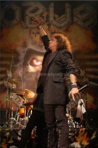 Aparte podemos dejar la maestría de Fortu como frontman, capaz de hacer perder la vergüenza al más tímido de los asistentes a uno de sus conciertos. ¿Qué va a pensar el abuelo? nos decía para hacer reaccionar al público. Pero éste no necesitó más que ver caer el telón y aparecer frente a ellos a la banda descargando “Corre Mamón” para comenzar a disfrutar con otra noche memorable con su banda. Aún con nuevo disco bajo el brazo, del cual comprobamos el efecto que pueden provocar temas como “Cállate”, elegido como single acertadamente como pudimos comprobar al escuchar a un público que emocionó al propio Fortu, no tardamos en recibir clásicos que hicieron desatarse a los jóvenes seguidores de la banda, pero sobre todo a los más veteranos. Estos no pueden resistirse después de tanto tiempo a las mismas sensaciones que les provocan temas como “Autopista”, que fue de los mejores de esta noche, sin dejar atrás ese “Pesadilla Nuclear” o “Juego Sucio”, cantado desde la plataforma de la batería por ese vocalista que no deja de ser un frontman a la vieja usanza. Captador de todas las miradas, pendientes de lo que nos va a decir en cada momento y de cómo va a actuar en cada instante. Sigue siendo el protagonista central de un concierto de Obús. La esencia con él y con Paco sigue ahí, pese a que Obús más que un cuarteto hoy sea prácticamente el grupo de estos dos ya sin Fernando y Luis desde hace un tiempo. Tanto es así que Fortu tiene que animar a Fernando Montesinos en alguna ocasión a que se junte a ellos dos en el centro del escenario para que no parezca un mero acompañamiento junto a Carlos Mirat a la batería. Ambos hicieron un sensacional trabajo en vivo con lo mejor a título individual reservado en el solo de batería de este último en su presentación.