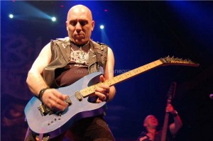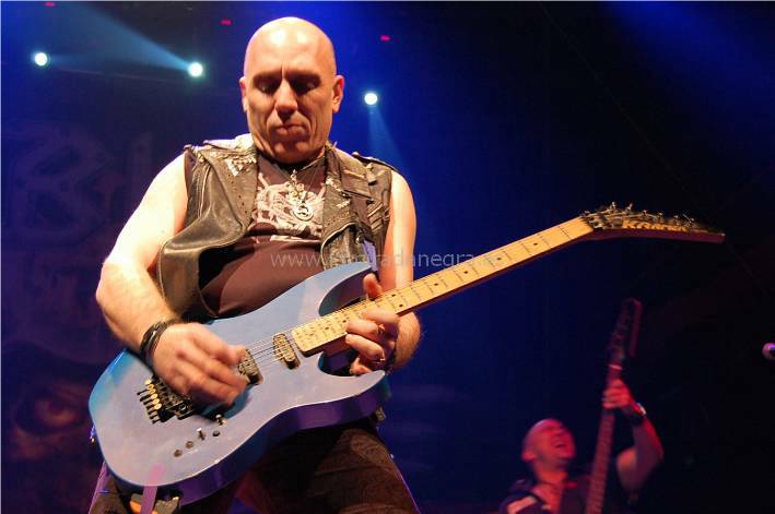 Cuando al entrar veía ese telón con el logo de Obús sentí como si un extracto de los 80 hubiera llegado hasta el presente. No es por encajonar a una banda en una época concreta y mucho menos darla por acabada, todo lo contrario más cuando sus últimos lanzamientos considero que están respondiendo al nombre de una banda tan legendaria, pero es que por muchas veces que hayas visto a una banda de esta andadura, con tal importancia en este estilo que tanto nos apasiona, uno no puede menos que sentir un hormigueo en el estomago pensando en aquellos momentos donde se fraguó toda esta historia de la cual, como por arte de magia, pasamos del recuerdo a plantarnos en la actualidad con unos iconos aún muy vivos.