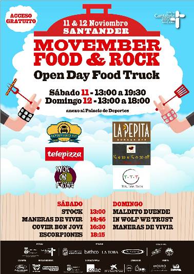 El Open Day de Movember Food & Rock se celebrará el sábado 11 y el domingo 12 de noviembre en el exterior del Palacio de Deportes de Santander como una actividad complementaria al festival y con el objetivo de ofrecer un plan familiar que combina la música en directo con la gastronomía del mundo.