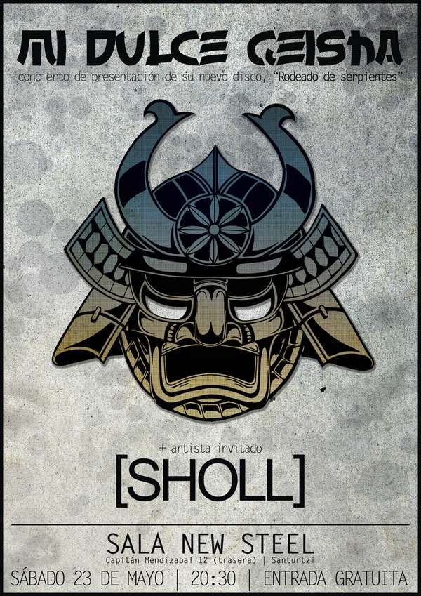 Este sabado 23 de mayo MI DULCE GEISHA realizará un concierto presentacion de su disco «RODEADOS DE SERPIENTES» junto a sus amigos SHOLL. El comienzo de realizará en la sala New Steel de Santurtzi a partir de las 20:30 c0n entrada gratuuita