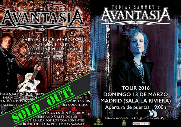 Si os habíais quedado sin entrada para ver el concierto de AVANTASIA en Madrid, el próximo mes de marzo 2016, nos llega la confirmación de una segunda fecha… Desde Sun ON Concert tienen el placer de anunciar el segundo concierto en Madrid de la banda, que será al día siguiente, domingo, también en la sala La Riviera. Las entradas se pusieron a la venta el 6 de noviembre 2015. De hecho ya hay entradas físicas a la venta en la tienda Sun Records. Éste es el comunicado de la organización: