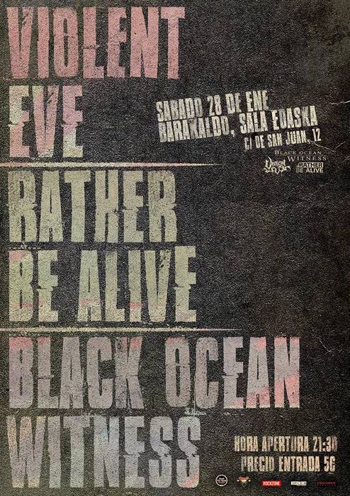 VIOLENT EVE + RATHER BE ALIVE + BLACK OCEAN WITNESS EN BARAKALDO ESTE SÁBADO